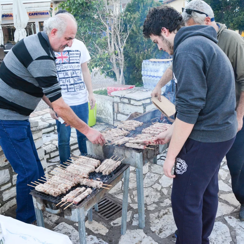 Every year, the local football club Proodos Ithakis organizes a Tsiknopempti celebration at the central plateia. Souvlakia are grilled on the spot, filling the square with irresistible aromas. Locals and visitors gather to eat, socialize, and enjoy the carnival mood. Games, music, and activities for children make Tsiknopempti a family-friendly event and a true expression of Ithaki’s community spirit.